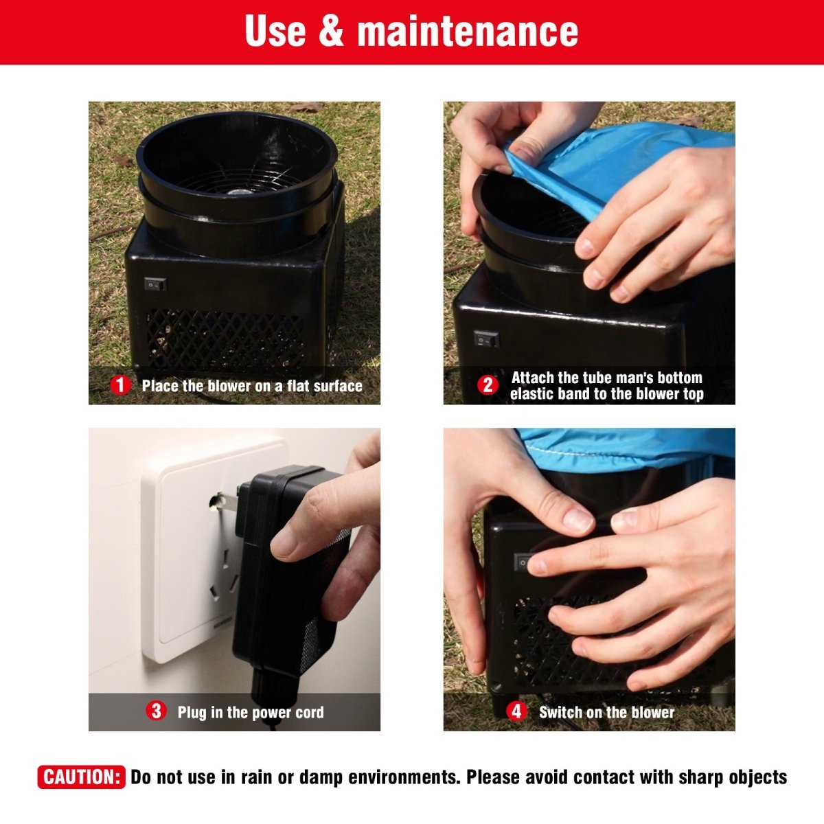 • 【DURABLE 36W WEATHER-RESISTANT BLOWER】 Includes a 36W blower with a 5.5-inch diameter air outlet, featuring an IPX4-rated design that resists splashing water from any direction. Suitable for outdoor use, but not recommended during heavy rain