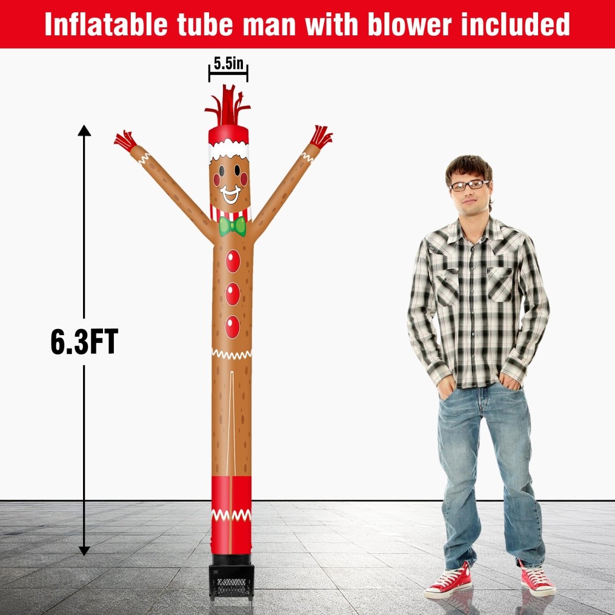 6FT Gingerbread Man Inflatable Tube Man with Blower (5.5'' Diameter) and Built - in LED - goodeny