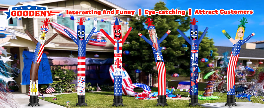 6 10 15 20FT Tall Happy 4th of July Waving Inflatable Tube Man(Blower Not Included) - goodeny