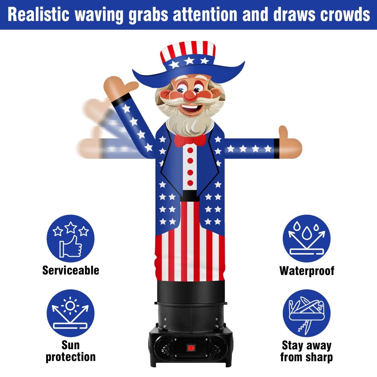 6FT Tall Inflatable Uncle Sam Wavers Inflatable Tube Man (18''Diameter) (Blower Not Included) - goodeny