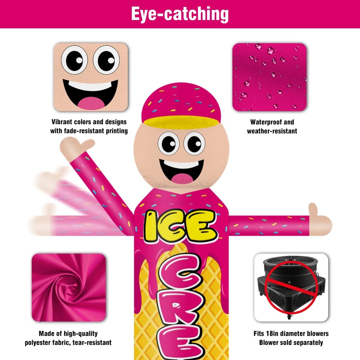 9FT Tall Inflatable Wavers Ice Cream Inflatable Tube Man (18''Diameter) (Blower Not Included) - goodeny