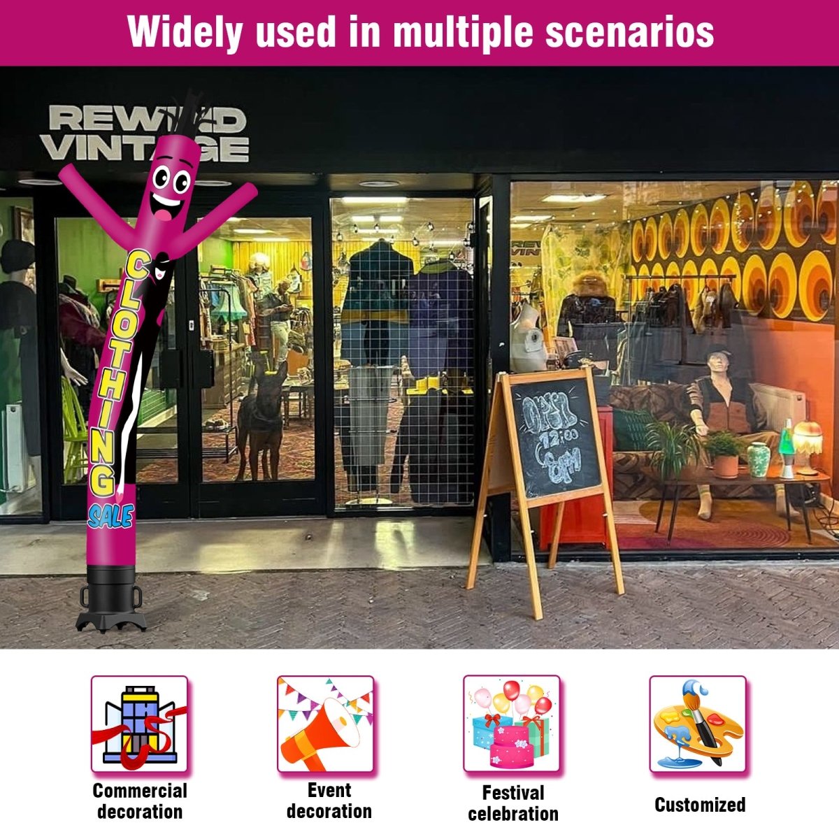 • Specifications: The inflatable dancing man features double-sided printing for maximum visibility. Available in 6ft, 10ft, 15ft, and 20ft heights — each size is designed to fit a specific blower diameter: