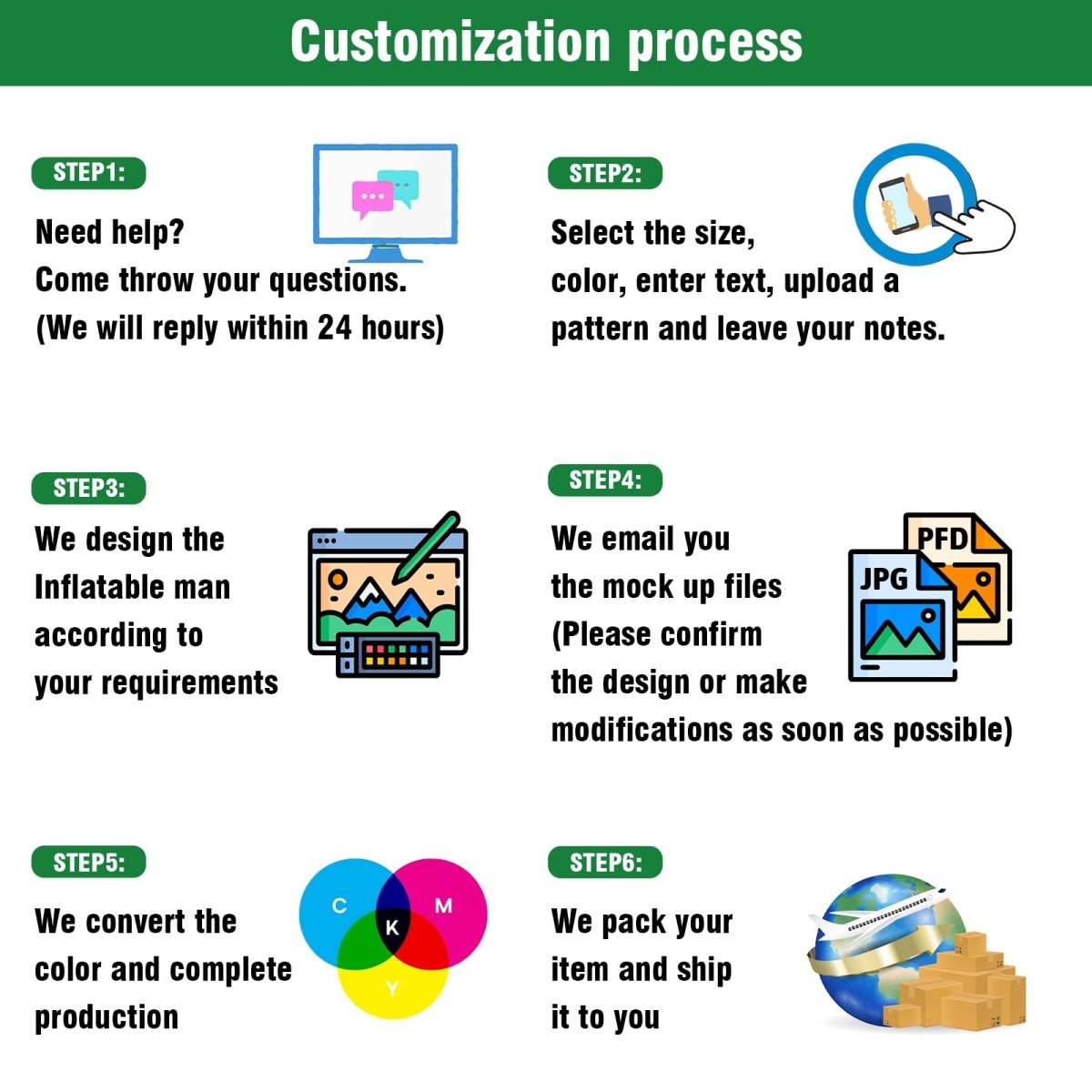 • Customizable: We have a professional team and factory to customize your unique inflatable dancer