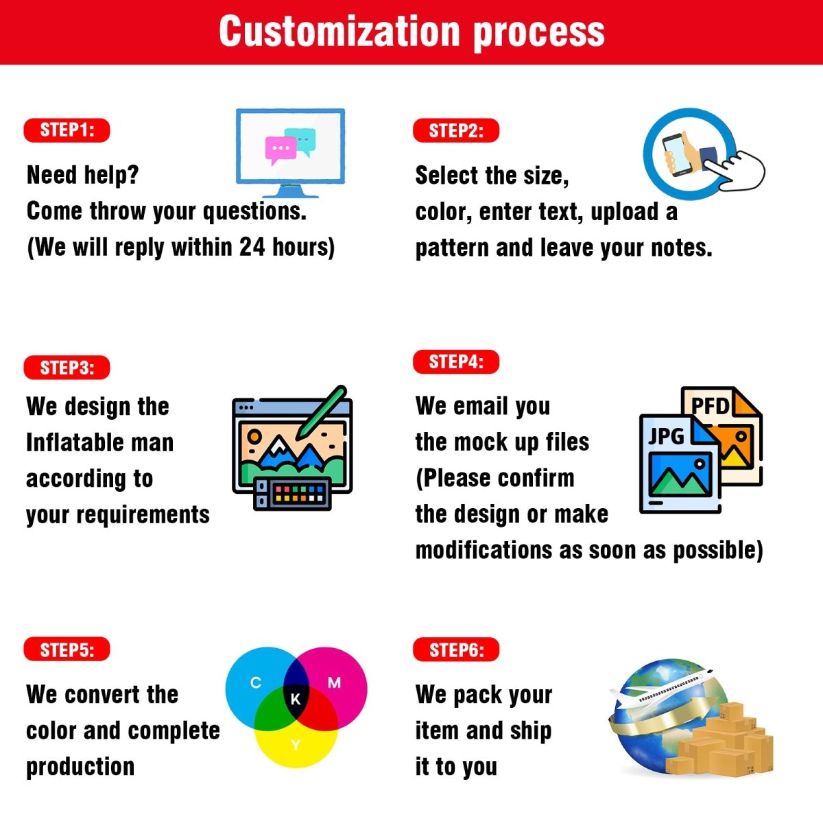 • Customizable: We have a professional team and factory to customize your unique inflatable dancer