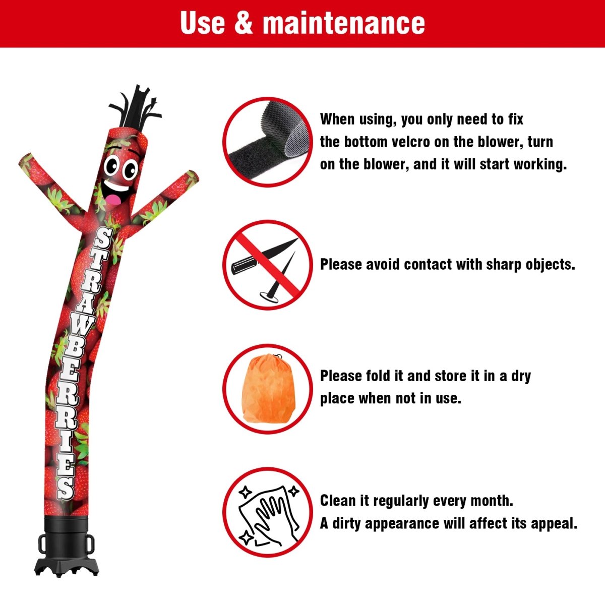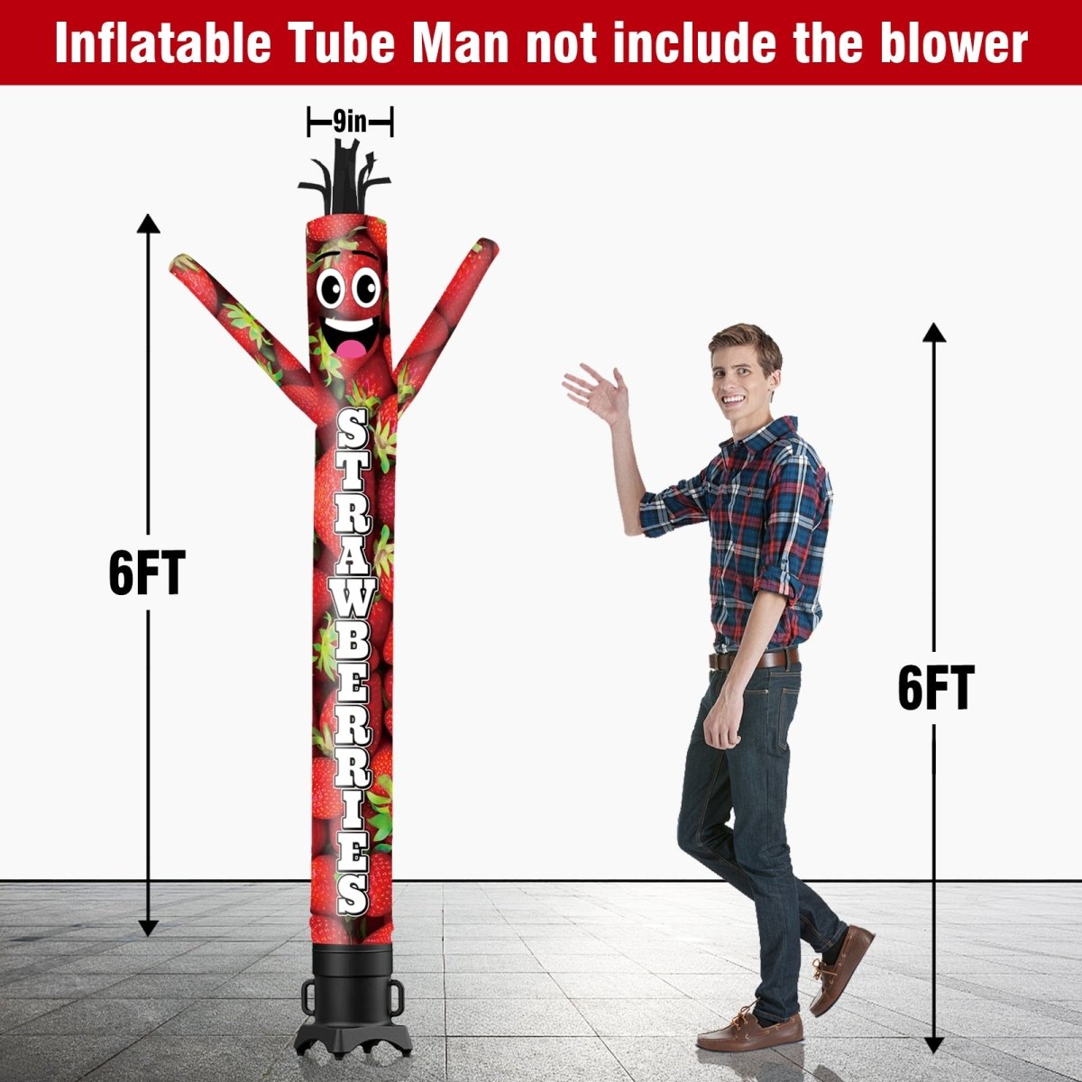 6 10 15 20FT Tall Strawberries Waving Inflatable Tube Man(Blower Not Included) - goodeny